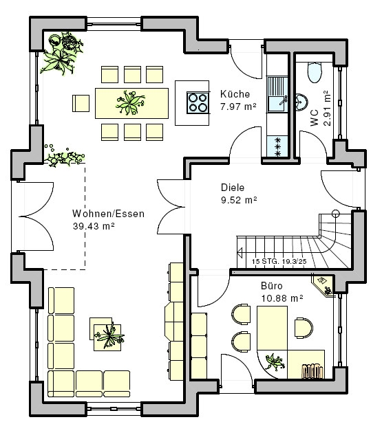 8,50 x 10,70 m (zzgl. Erker im Traufbereich und Treppenhaus)